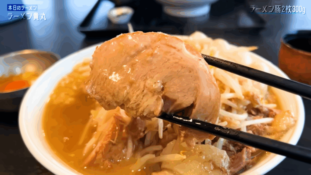 こちらが「ラーメン貴丸」さんのラーメン豚2枚300g、各種トッピングです。