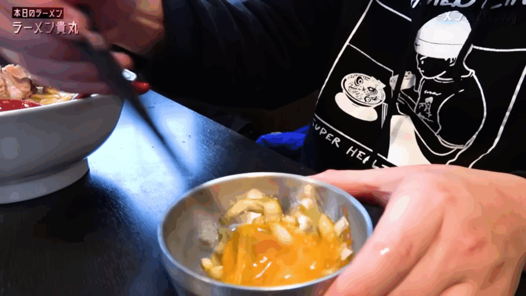 ここで味変アイテムのコッコマンAを投入。生卵に玉ねぎや生姜、タレ、そして脂が加わった濃厚な一品で、麺を絡めればまろやかさとパンチ力が同時にアップ。爽やかな生姜の香りが良いアクセントになり、後半戦もすすり心地良く楽しめます。