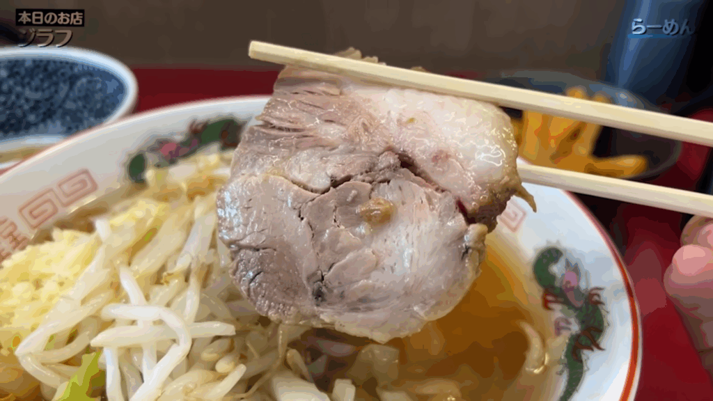 続いてブタ。厚みがありながらも柔らかく、スッと歯が入るジューシーさ。ブタ本来の旨味をしっかりと感じられ、ヤサイとの相乗効果で食欲が止まりません。