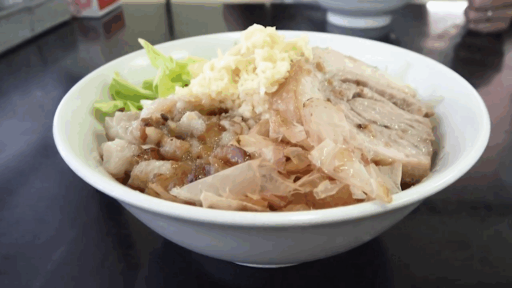 - アブラとヤサイは、醤油ダレで程よく味付けされたアブラのコクとシャキっとしたヤサイの食感が相性抜群で、一口目からインパクトのある旨さです!