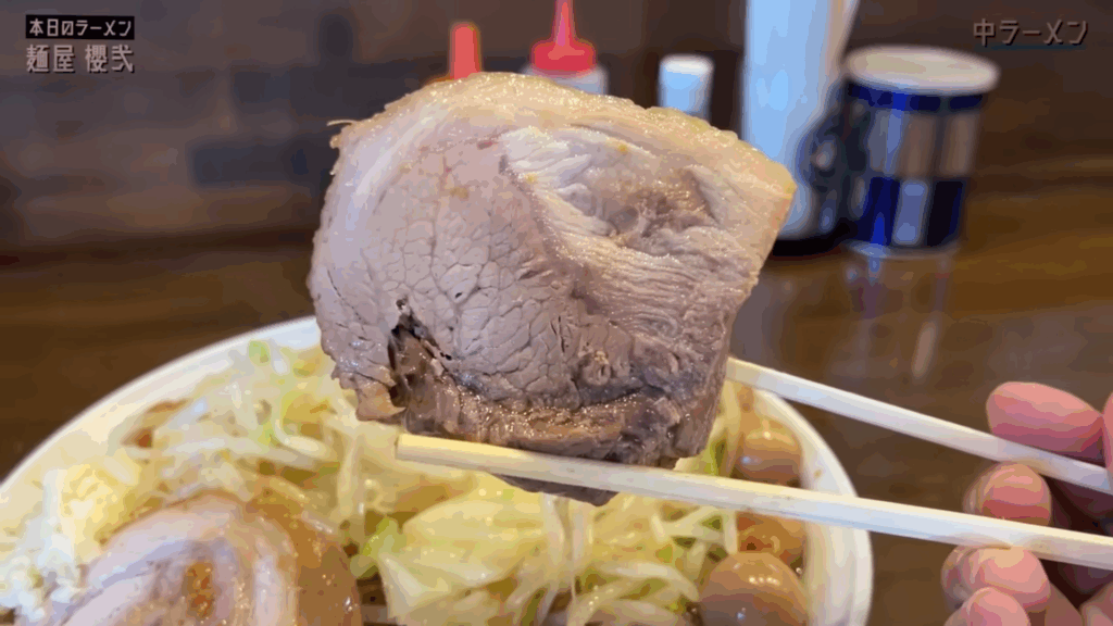 名前の通り驚くほど太い麺は、噛むとバキバキとした食感で、また違った個性を楽しめる仕上がり。ラーメン愛を感じる強烈な一杯です。