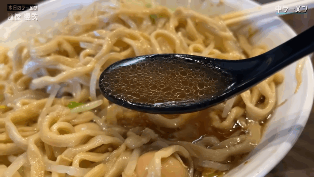 スープは醤油ベースで、油分がガツンと感じられるタイプで、インパクト重視ながらも、非乳化傾向で醤油のキレを残す味です!