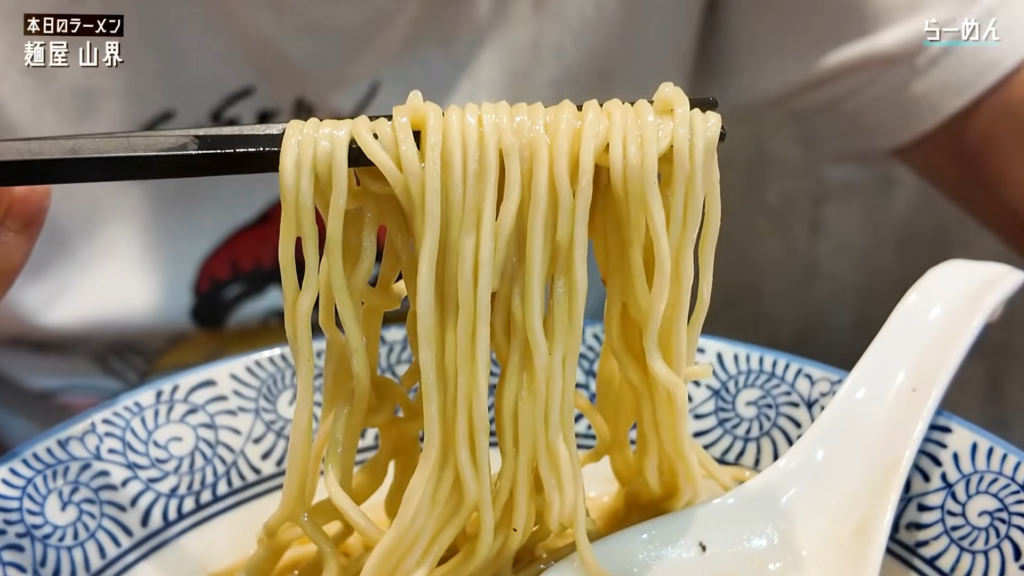 - 中細麺はスープとの馴染みもよく、滑らかなすすり心地でどんどん箸が進む!