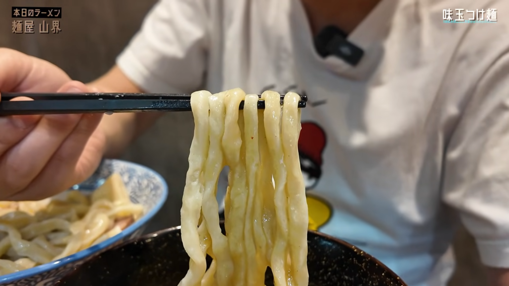 まずは麺のみですすると、小麦の密度をしっかり感じる力強い食感!太さの違いによる食感の変化もあり、一口ごとに楽しめる仕上がりです!