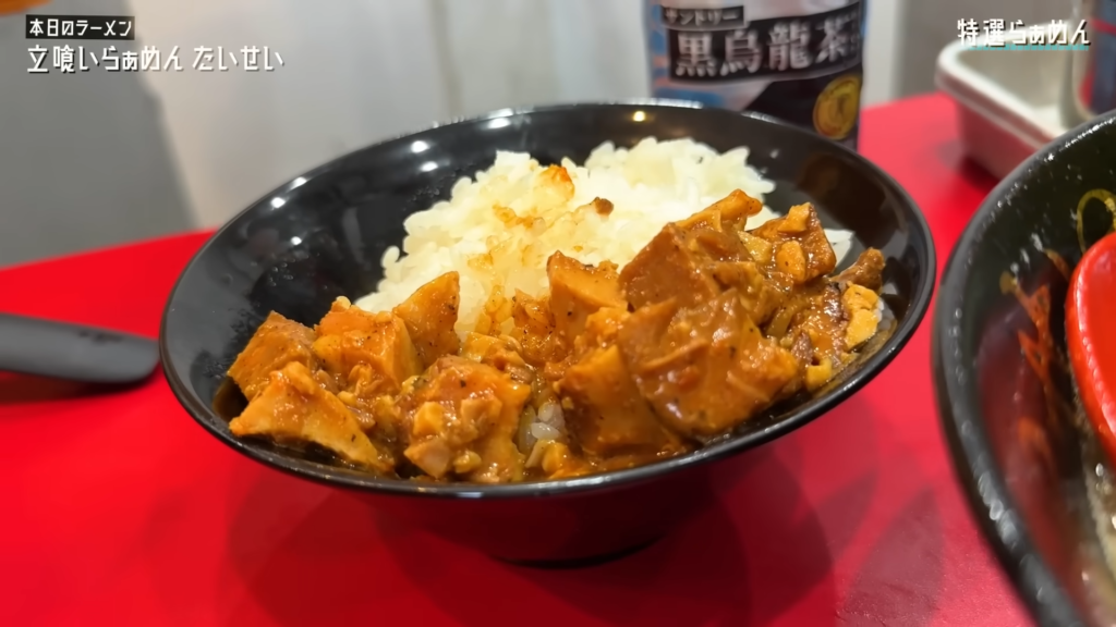 さらに「ごはんのお供」は甘辛く味付けされた刻みチャーシューで、これがご飯との相性抜群!スープや漬物と合わせれば一気に食べ進めてしまう仕上がりです!