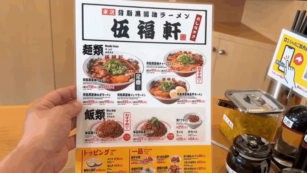 ここでは伍福軒のメニューや卓上調味料について紹介します。