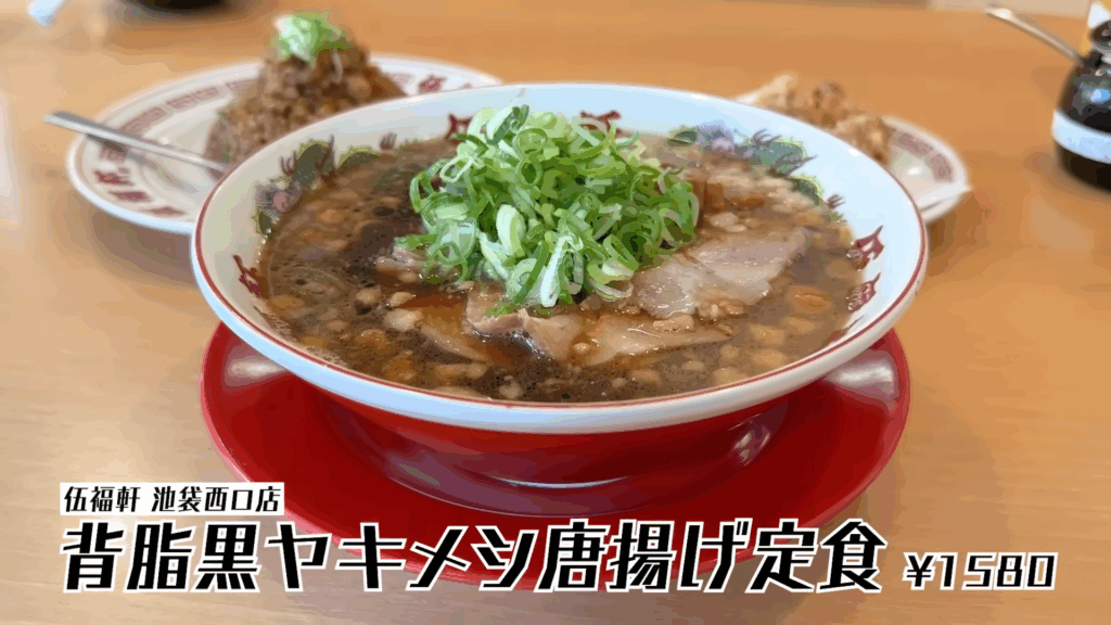 こちらが、伍福軒 池袋西口店さんの「背脂黒ヤキメシ唐揚げ定食」です!