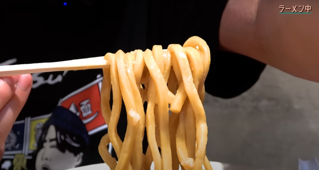 次に、麺との対面!自家製の極太麺はズモモしたすすりごたえがあり、食感も抜群でした。