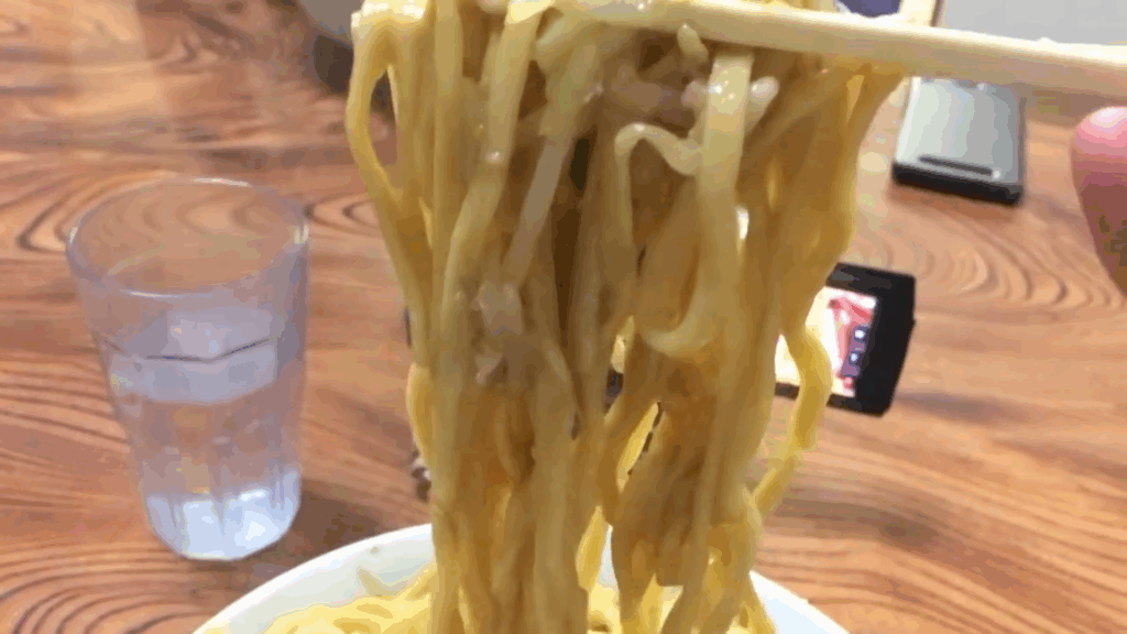 - 麺は自家製の極太平打ち麺で、小麦の香りが強く、みっちりと詰まった密度のある食感が特徴的で、濃厚に乳化したスープと絡むと力強さ満点!