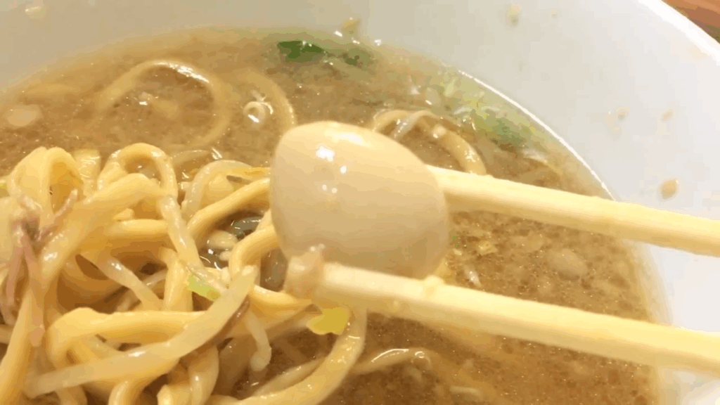 ラストは味玉。黄身までしっかりと味が染みており、豪快な一杯の締めにふさわしい存在感を放ちます。