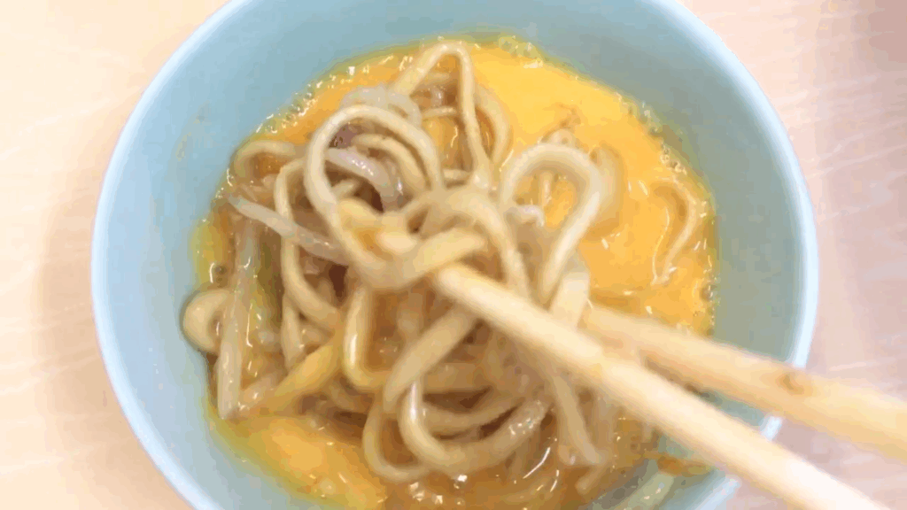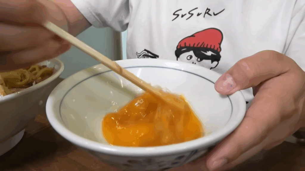 ここで生卵を投入。麺を絡めてすすれば、醤油が際立つスープがまろやかに包み込まれ、すき焼き風の味わいに変化。食べ進める楽しさが一層広がります。