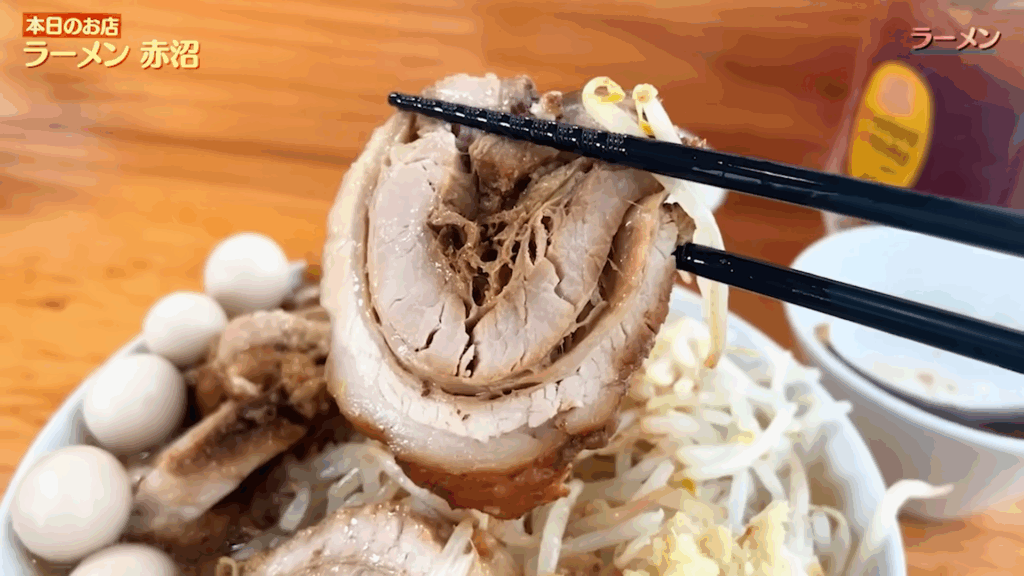 - 豚は、厚みのあるチャーシューは驚くほど柔らかく、口の中でとろけるような仕上がり!