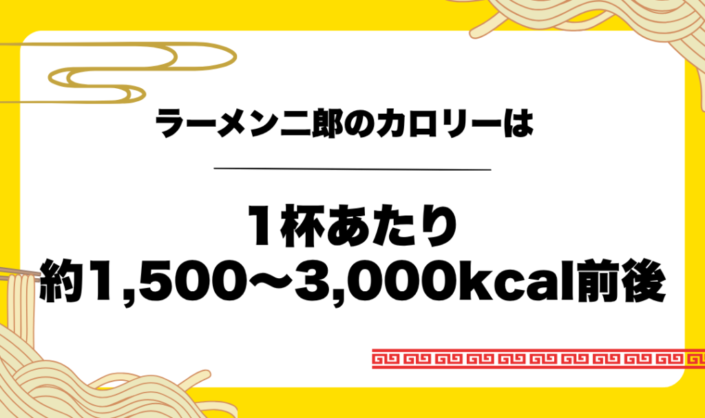 ラーメン二郎のカロリーは、一般的なラーメンと比べて非常に高く、1杯あたり約1,500〜3,000kcal前後が目安です。