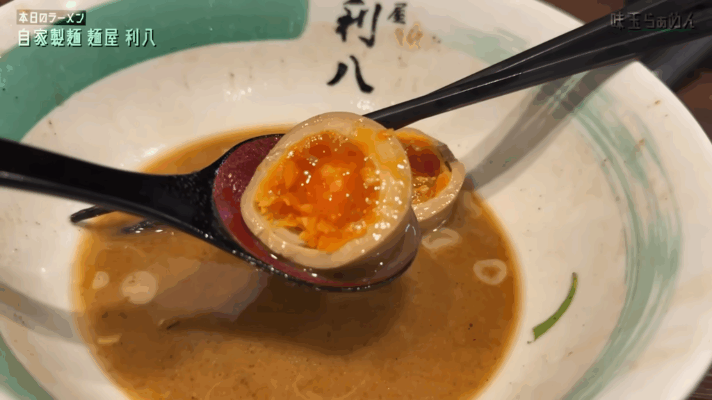 こちらが、「自家製麺 麺屋 利八」さんの「味玉らぁめん」です!