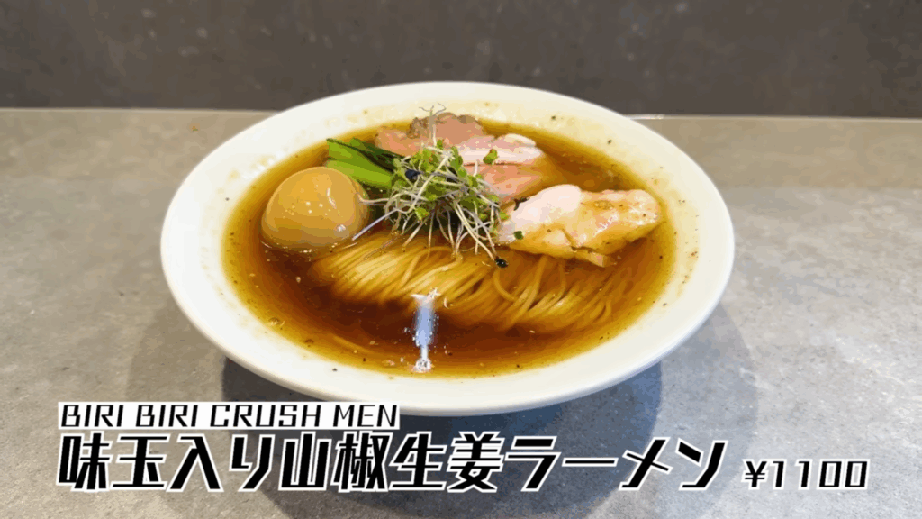 こちらが、「BIRI BIRI CRUSH MEN」さんの「味玉入り山椒生姜ラーメン」です。