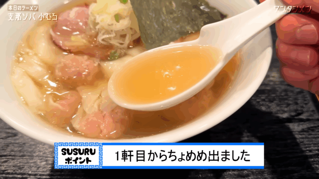澄み切ったスープに薄皮ワンタンが美しく浮かび、見るだけで引き込まれる端正なビジュアル。これは一杯目から間違いなしということで、早速いただきます!
