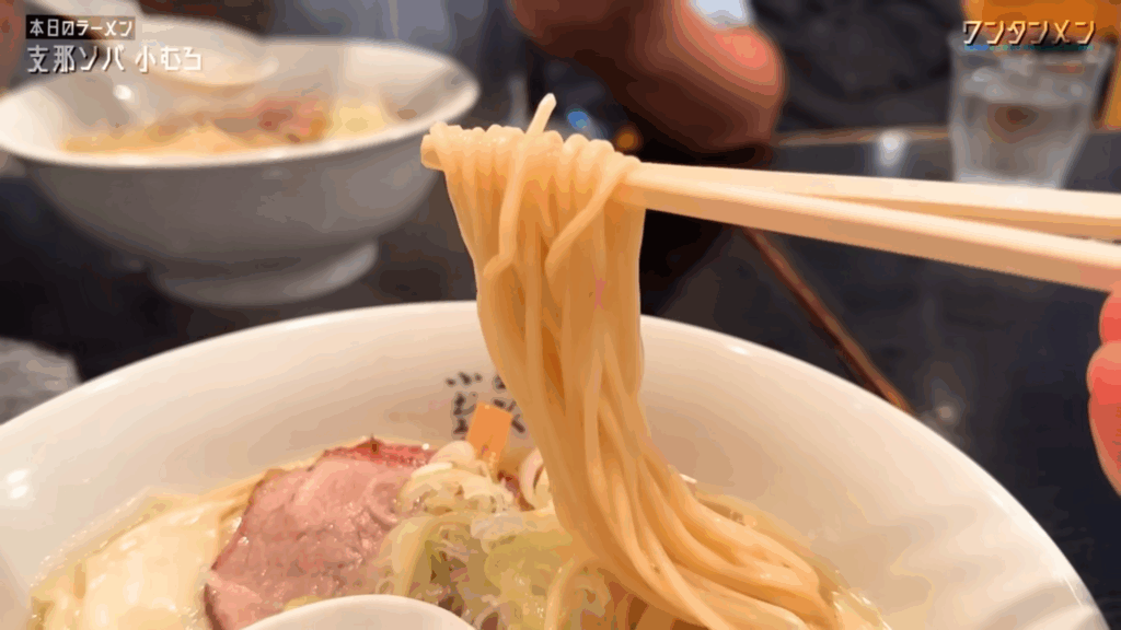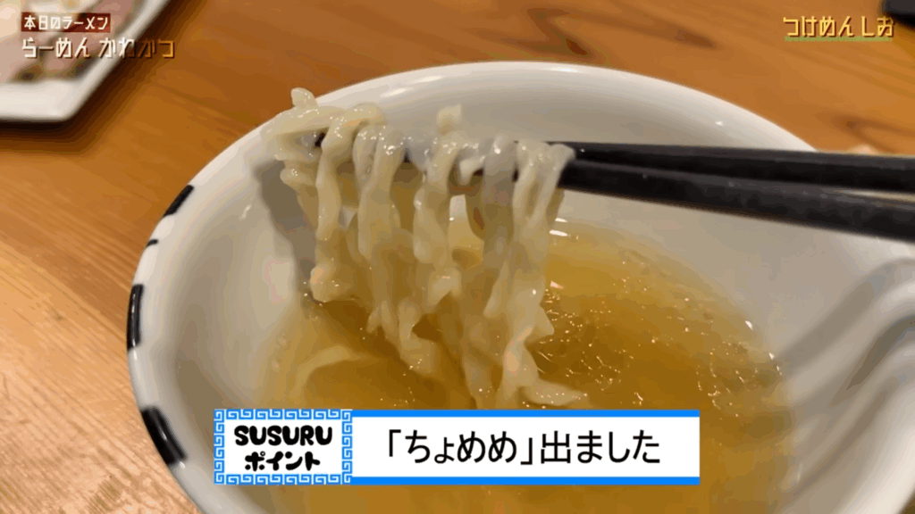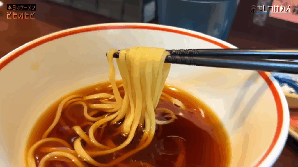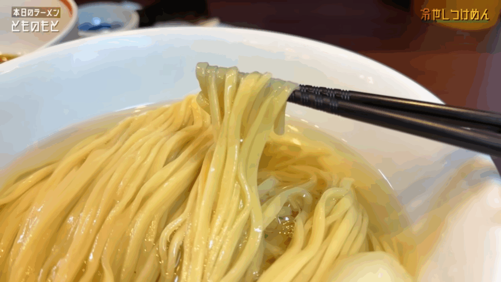 そんな上品なスープに続いて麺をすするため、軽やかにリフト。自家製の中細ストレート麺はつるりと滑らかで、適度な弾力と喉越しの良さが際立つ完成度の高い一本。小麦の香りがほんのり広がり、スープと麺が出会うことで初めて一杯として完成する構成で、端正な淡麗スープとの一体感が抜群です。