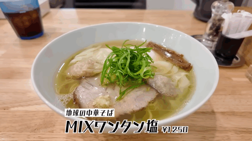 こちらが、「地球の中華そば」さんの「MIXワンタン塩」です。