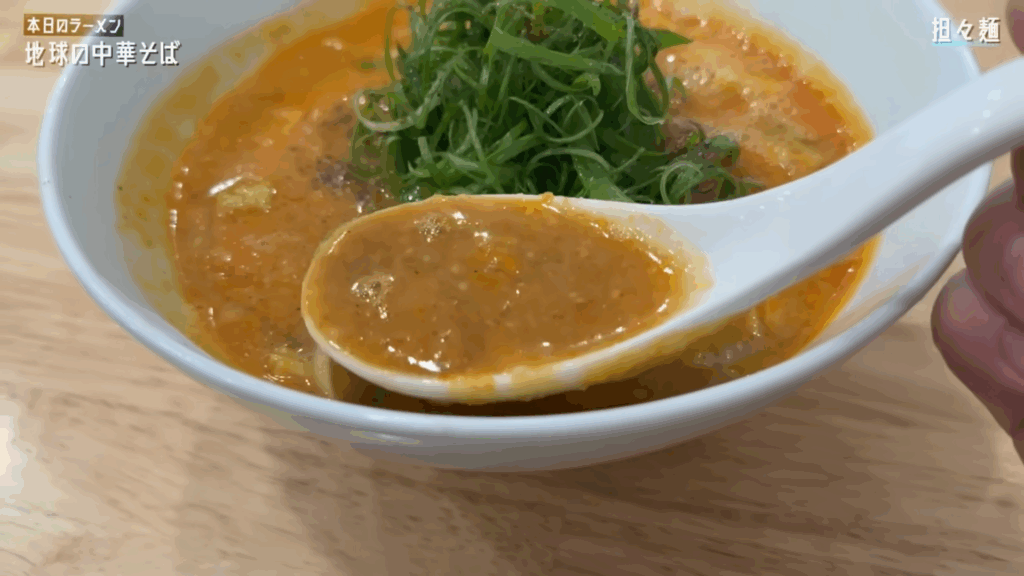 スープを飲むと、最初は優しい口当たりながら、飲み進めるほどに旨味がじわじわ積み重なっていきます。ごまの甘み、ラー油の辛味、出汁のふくよかさが重なり、バランスの良い深みが広がります。