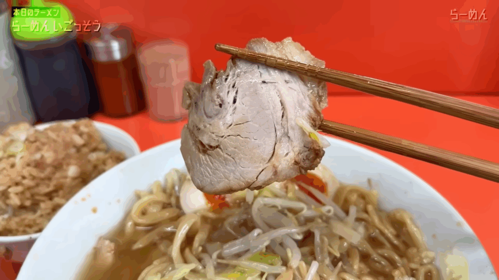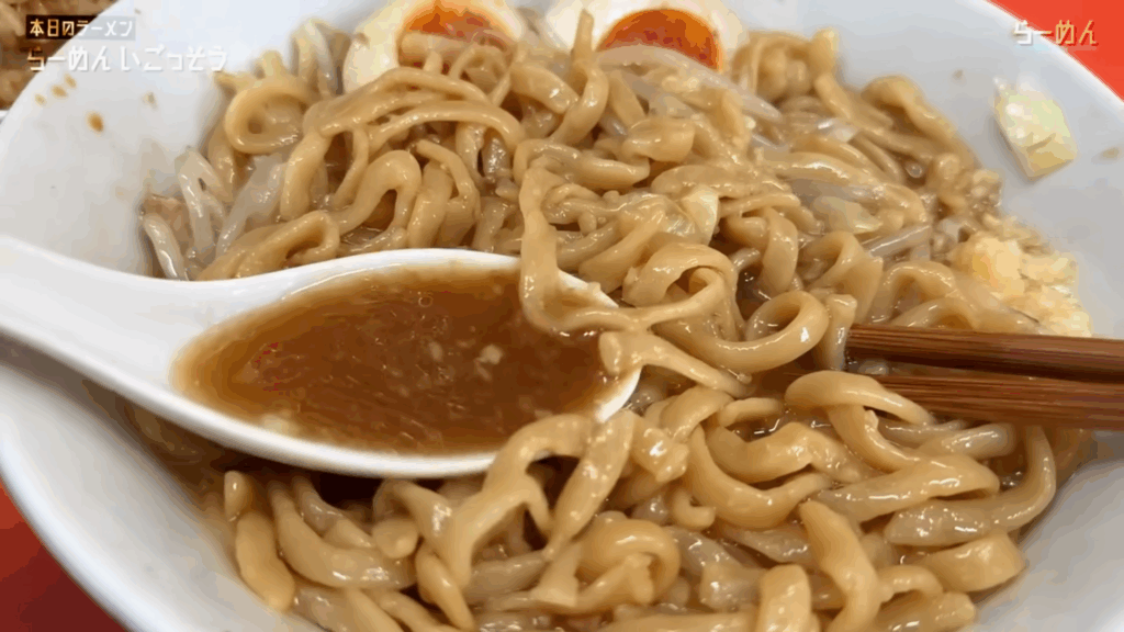 続いて豚を食らうと、これが実にうまい。程よく醤油ダレが染み込み、ギュッとした肉質と柔らかさが共存した仕上がりで、三田本店を思わせる力強い味わいがしっかり感じられます。