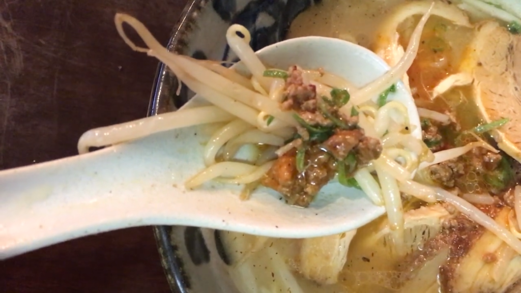 終盤になるにつれて、肉味噌がスープに溶け込み、より深みのある味わいに変化していきます!最後はスープまでしっかり味わって完食です!