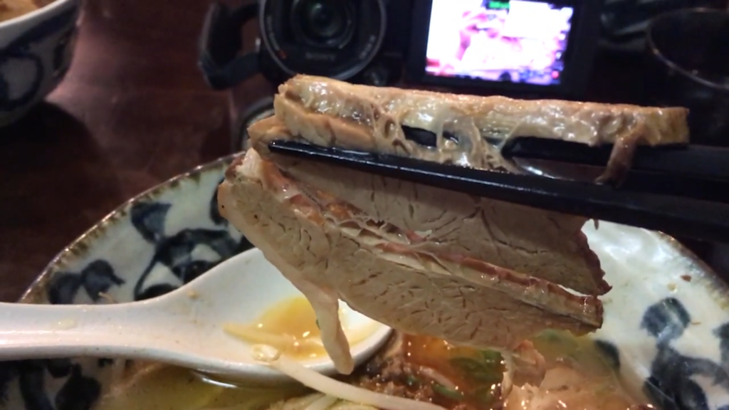 そしてチャーシューです!見た目はほろほろ系ですが、実際はしっかりとした食感で、噛むほどに旨味が広がります!肉増しにした満足感もしっかりあります!