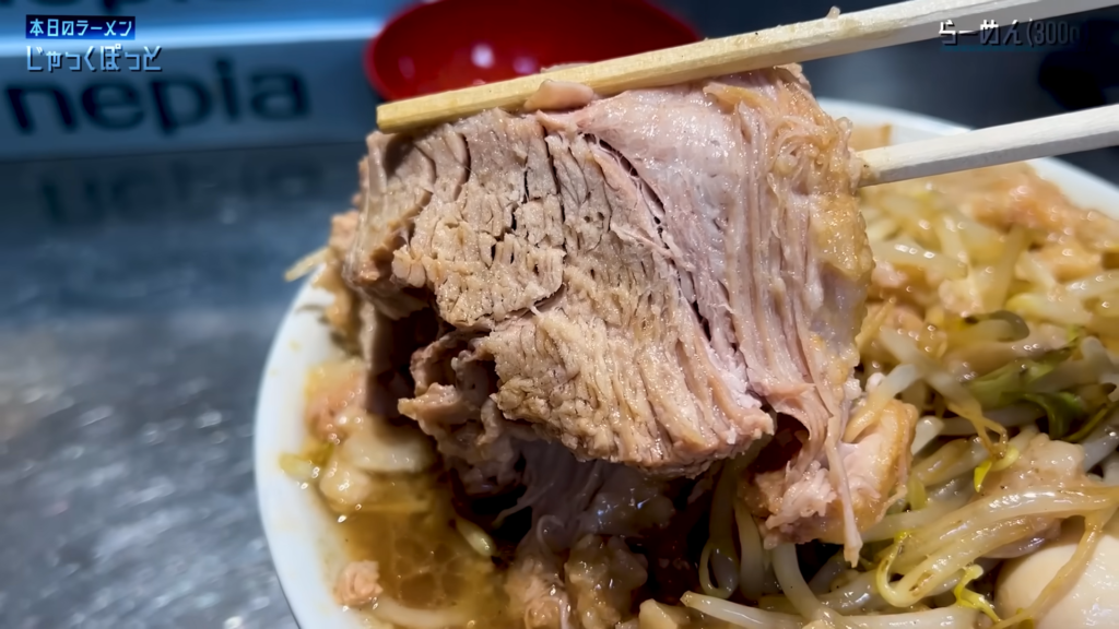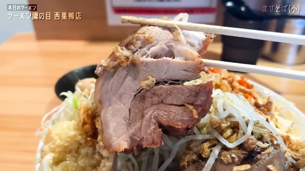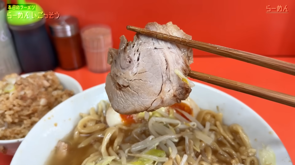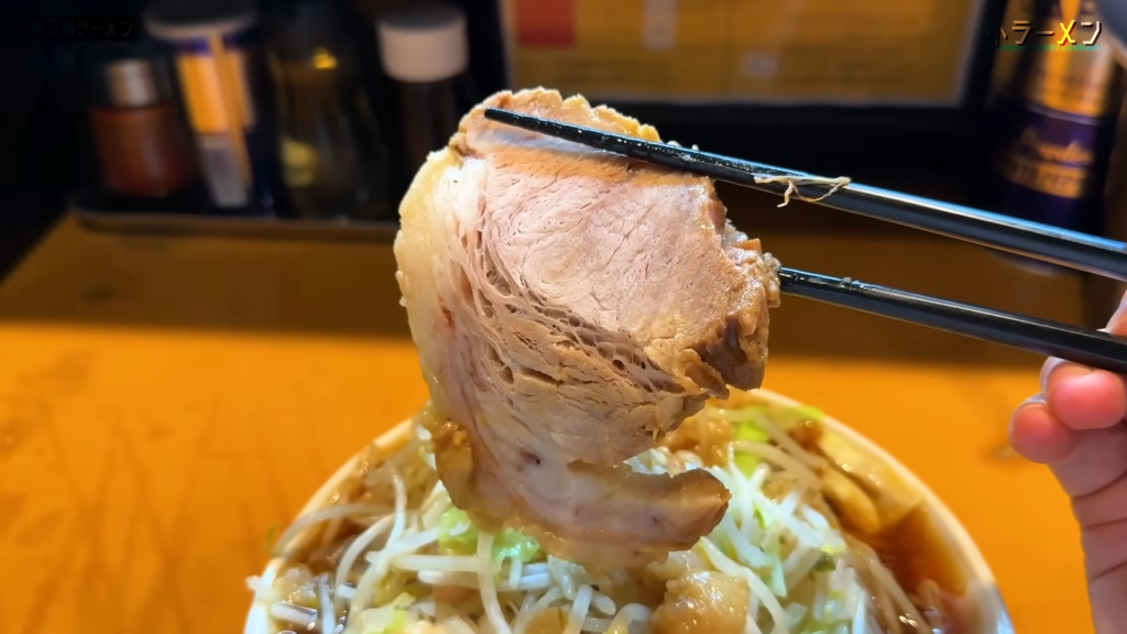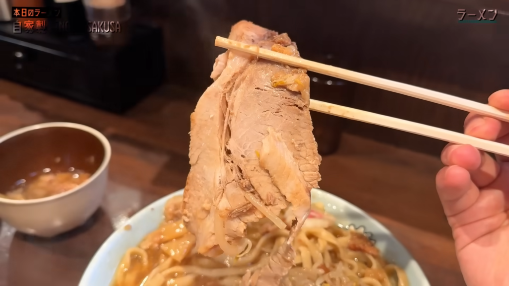 そして忘れてはいけないのがブタ。提供直前にしっかり温められたブタは、外は香ばしく、中はトロッと柔らかい仕上がりで、麺とタレに次ぐ第三の主役と言っても過言ではない存在感。噛むたびに広がる豚の旨味が、全体の満足度をさらに底上げしてくれます。