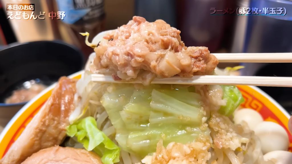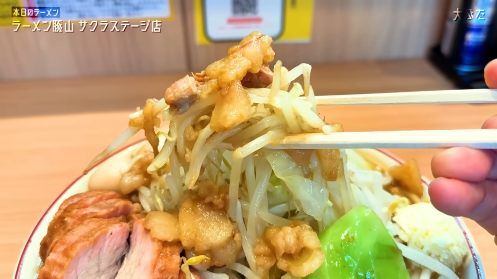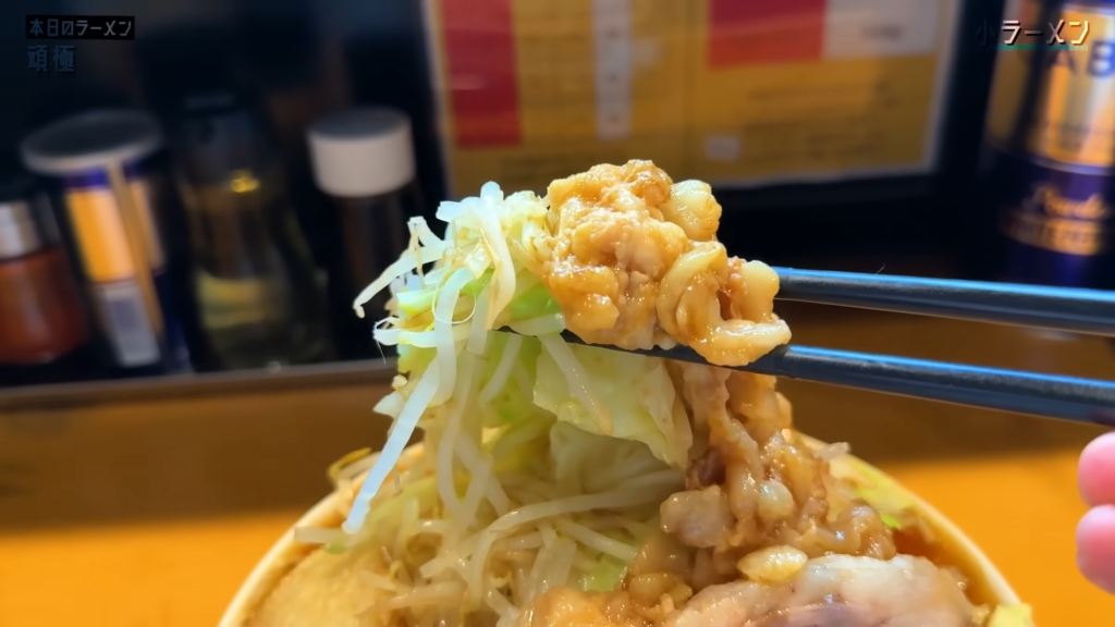 - ヤサイ、アブラは、やさしく味の染みたヤサイの食感と、プレーン寄りでコクのあるアブラが見事に噛み合い、序盤から食欲を一気に加速させてくれます!