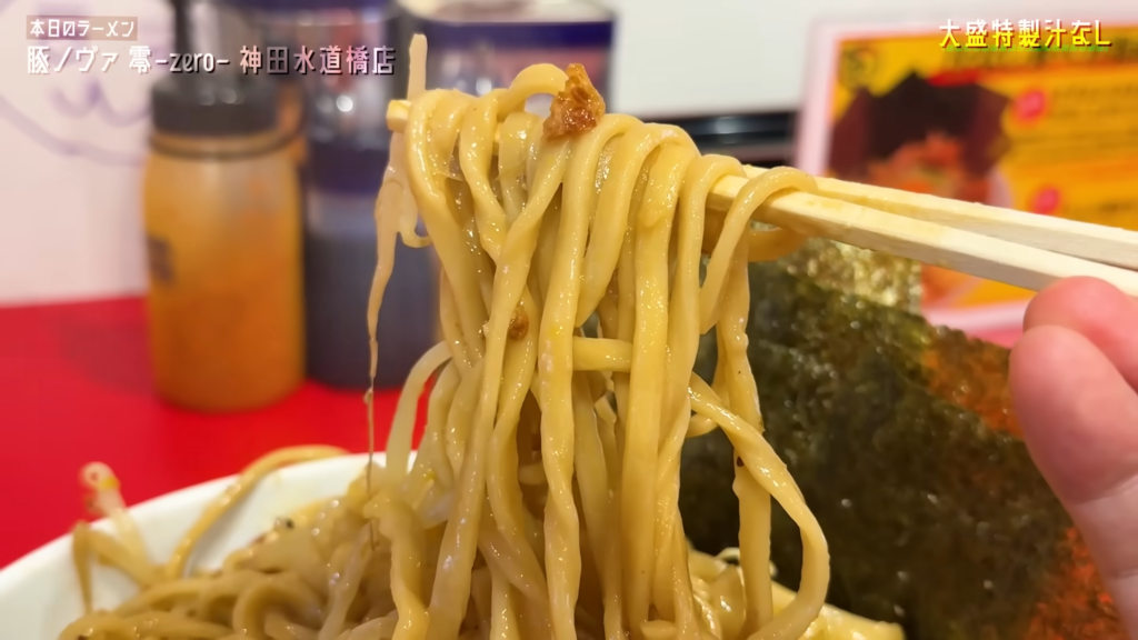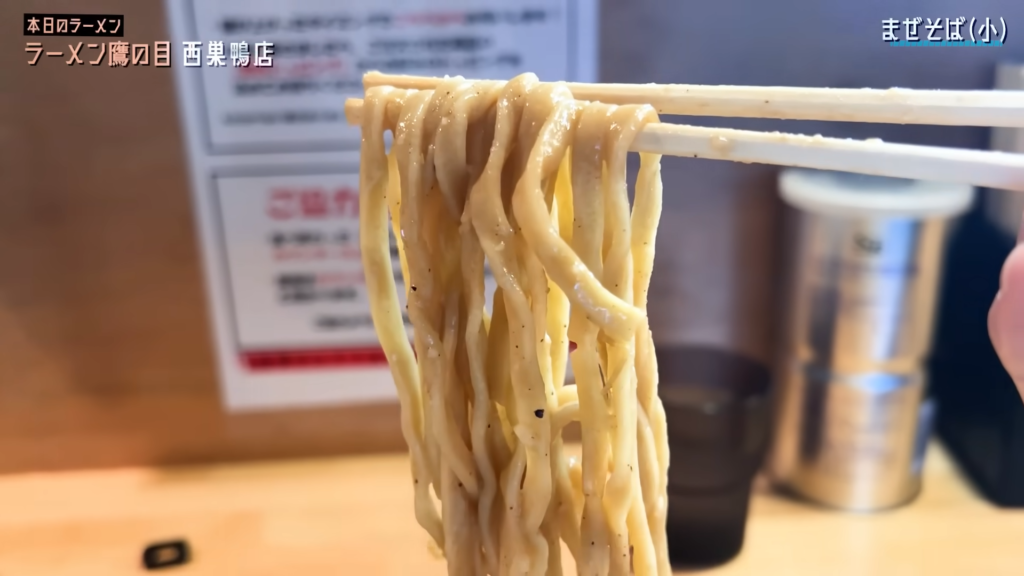 - 麺は、小麦のワイルドな香りが一気に広がり、ゴリッとした非乳化スープとアブラをしっかり持ち上げてくる、攻撃力の高い味わい!
