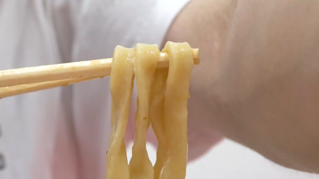 - 表面がニュルンとした滑らかなすすり心地でクニュとした食感がたまらない麺!