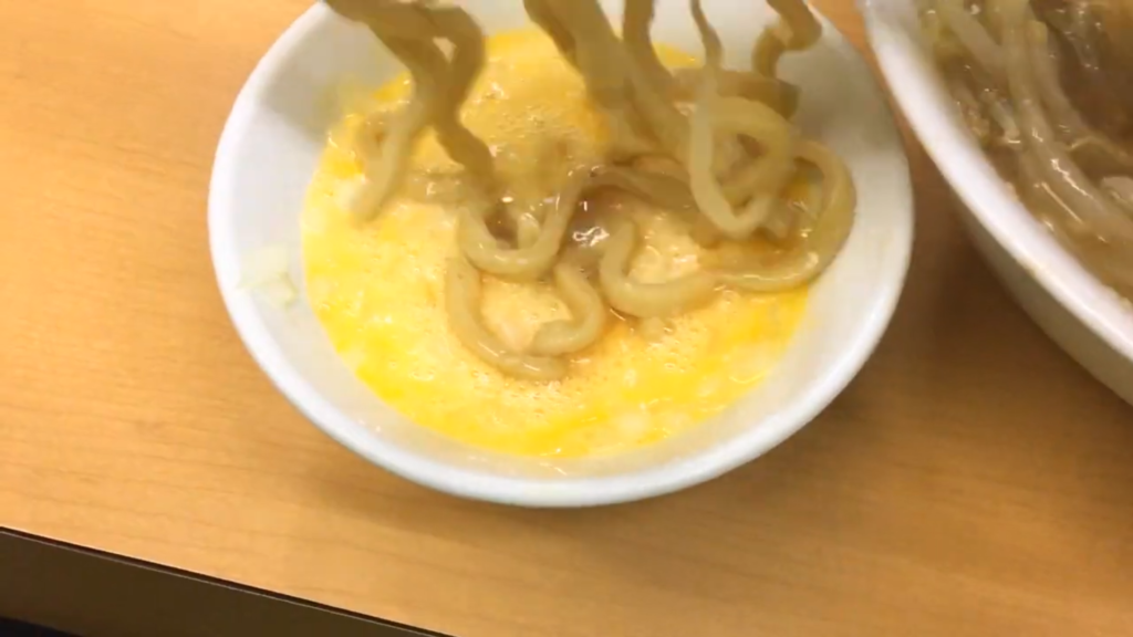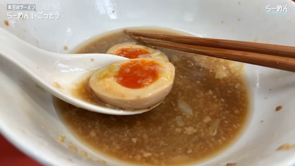 ここで生卵を絡めて麺をすすれば、卵黄のコクがさらに深みを加え、より濃厚な味わいに!