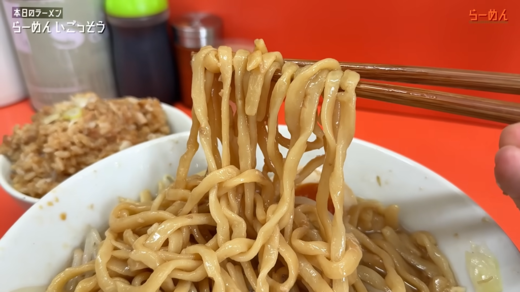 - 平打ち気味の極太麺はワシワシとした噛み応えがあり、二郎インスパイアらしい力強さをしっかりと感じさせてくれます!