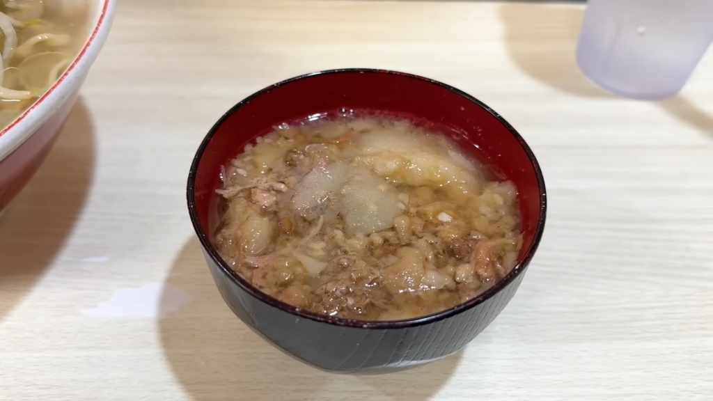 アブラとクタっとした野菜を一緒に口に運ぶと、予想通りのショッパウマさ。アブラの旨味が野菜にしっかり絡み、単体でも成立してしまう完成度の高い“アブラサラダ”として成立しています。これだけで白飯が欲しくなるレベルです。