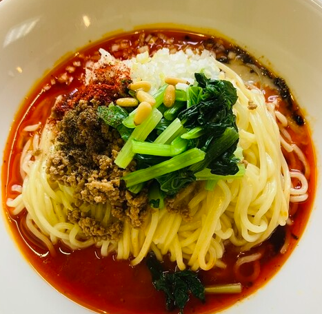 スープは、練り胡麻のコクを土台に、辣油の辛味と花椒の痺れが層になった本格派です!