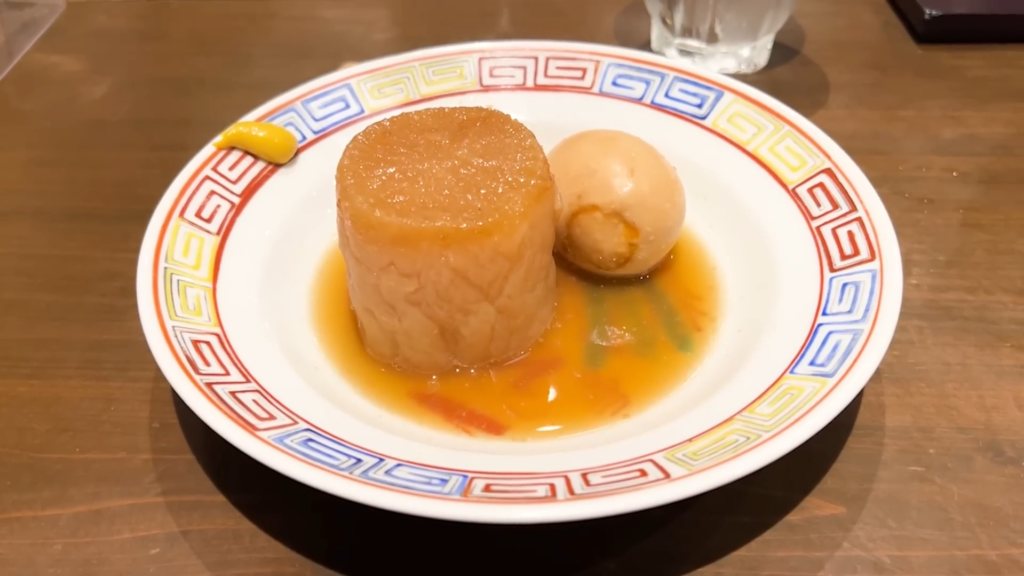 ラーメンのスープを使って仕込まれているそうで、ラーメン屋ならではの深みのある味わいが感じられます。おでんだけでも満足度が高く、丁寧に仕込まれているのが伝わってきます。