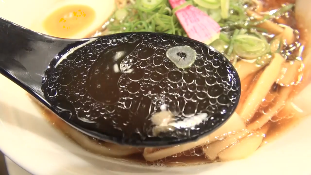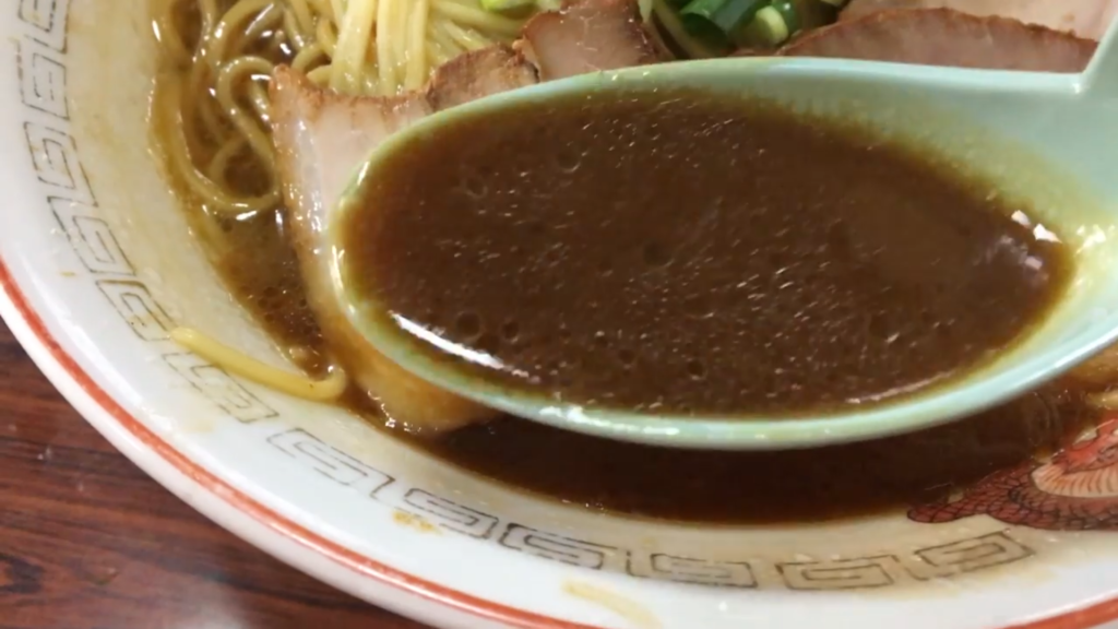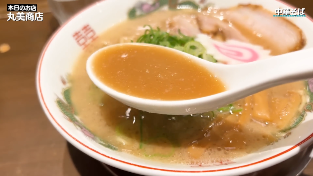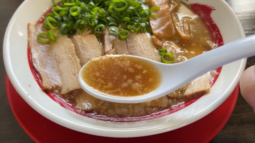 - スープは、豚骨の旨味と醤油のコクが前面に出た力強い味わいで、ひと口目からしっかりと印象に残ります!
