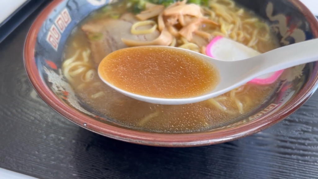 - スープを味わってみると、いわゆる観光地のフードコートで提供される和歌山ラーメンといった印象で、親しみやすくすっと入ってくる味わいです!