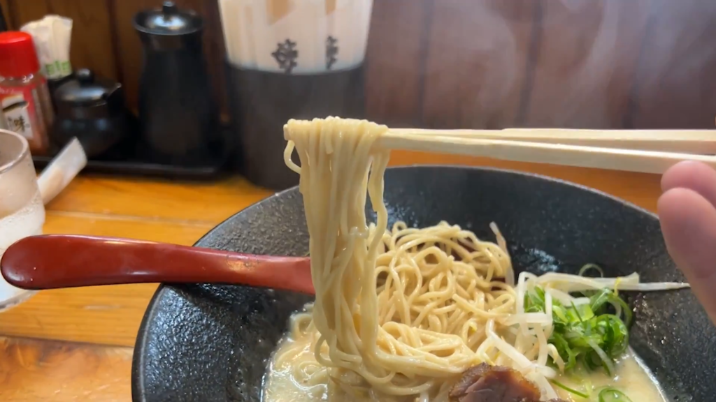 - 麺は、軽やかな豚骨スープとよく絡み、さらさらと次の一口へ進めてくれます!