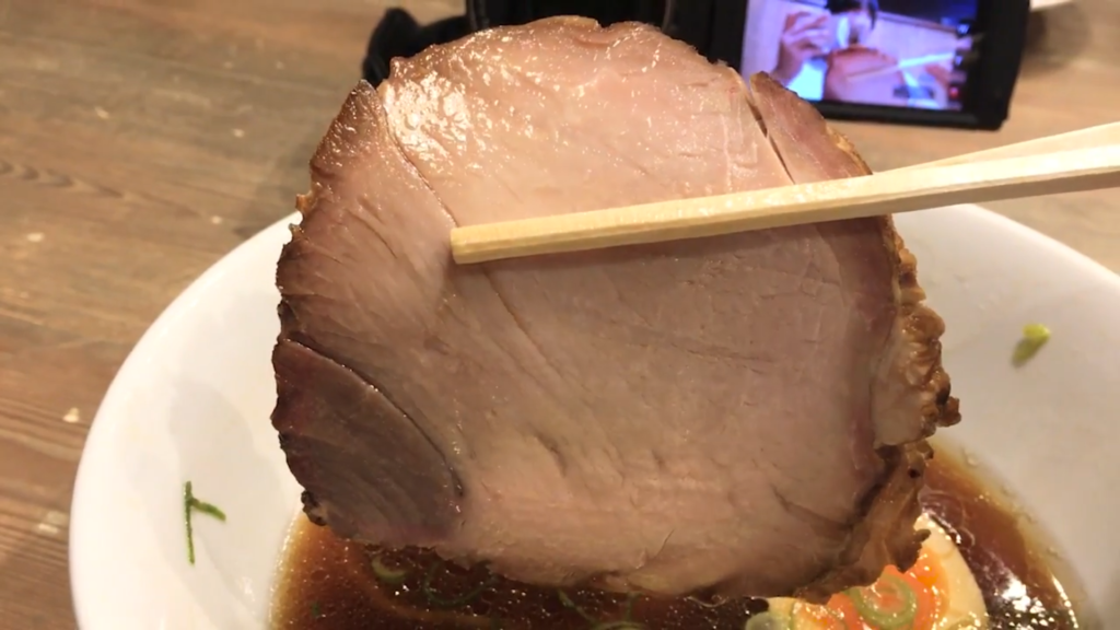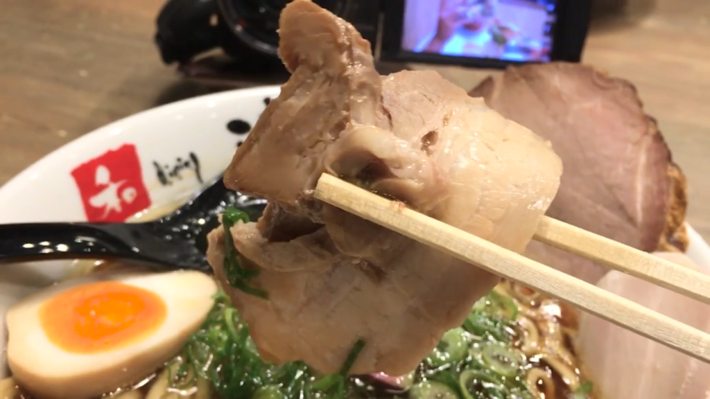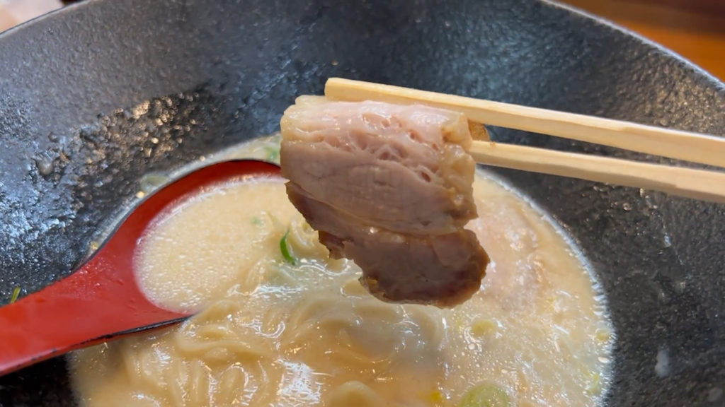 チャーシューは非常に柔らかくジューシーで、脂身のノリも抜群。スープをまとわせて食べれば、味わいはさらに濃厚になり、満足感もしっかり。
