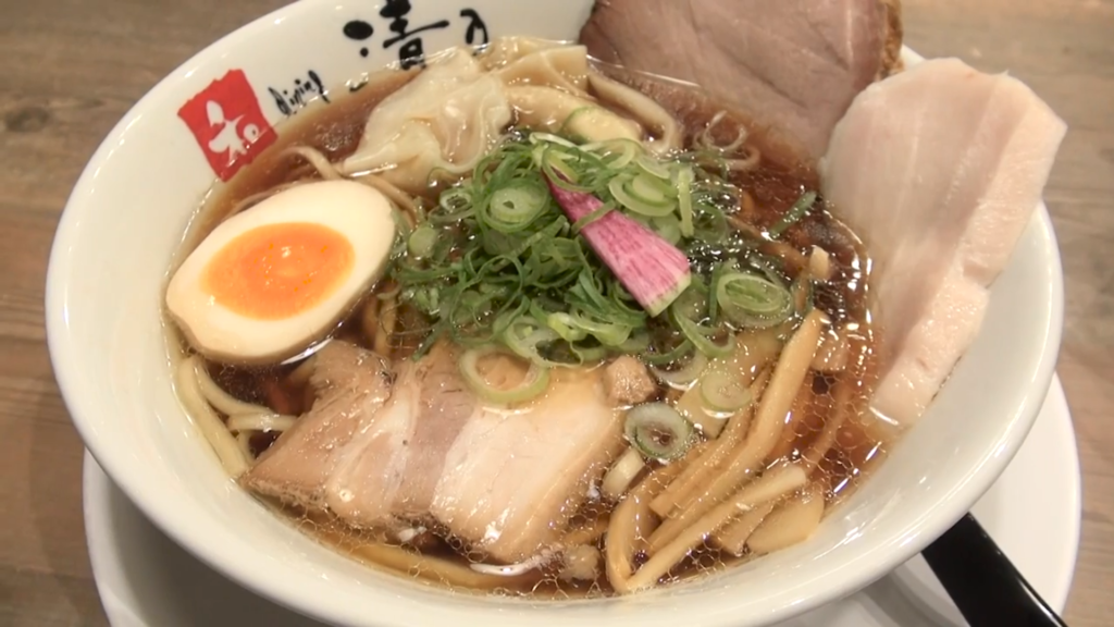 近くを流れる有田川の水面を思わせる澄んだ淡麗しょうゆスープに、ワンタンや三種類のチャーシューが整然と並び、見た目からして完成度の高さを感じさせます。