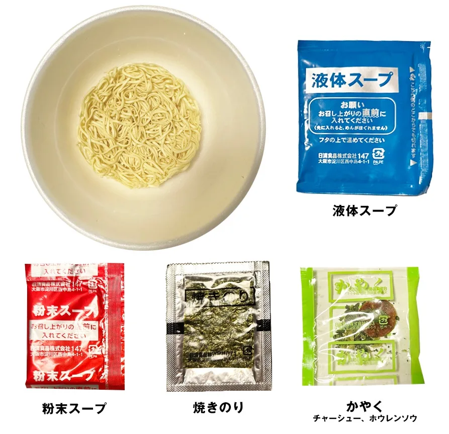山岡家のカップラーメンの内容物は次の通り